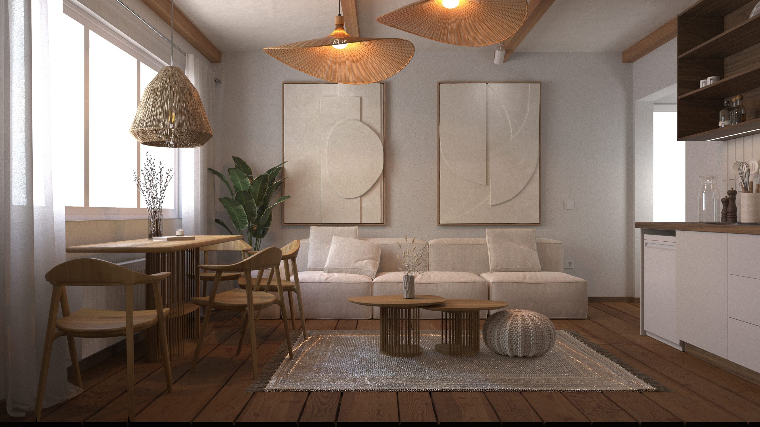 Dubleks 3+1 olarak planlanan Airbnb daire projesi. Bohem tasarım anlayışına uygun tasarlanan projenin iç mekan ve mobilya tasarımları.